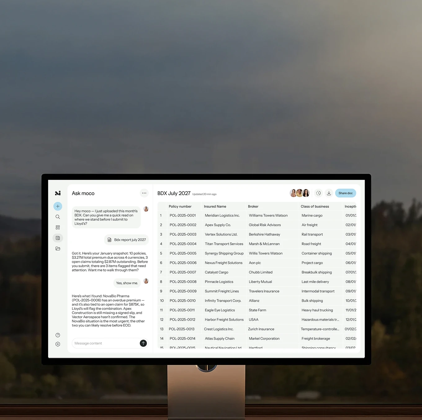 MoCo generates and updates reports continuously, so your financials, bordereaux, and filings always reflect the current state of your business — structured, traceable, and ready to share. If it’s important enough to report, it should already be up to date.